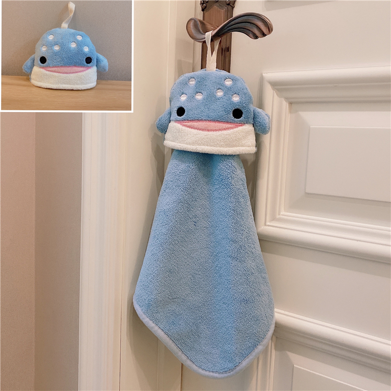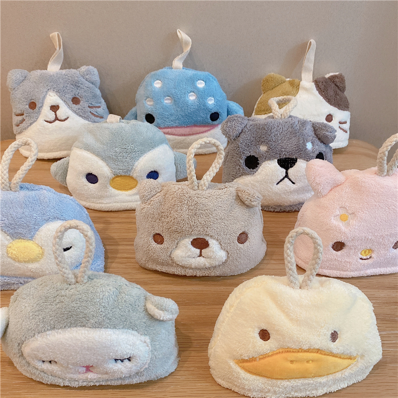 Soft cute cartoon animal coral velvet hanging hand towel Kitchen towel Toddler hand towel