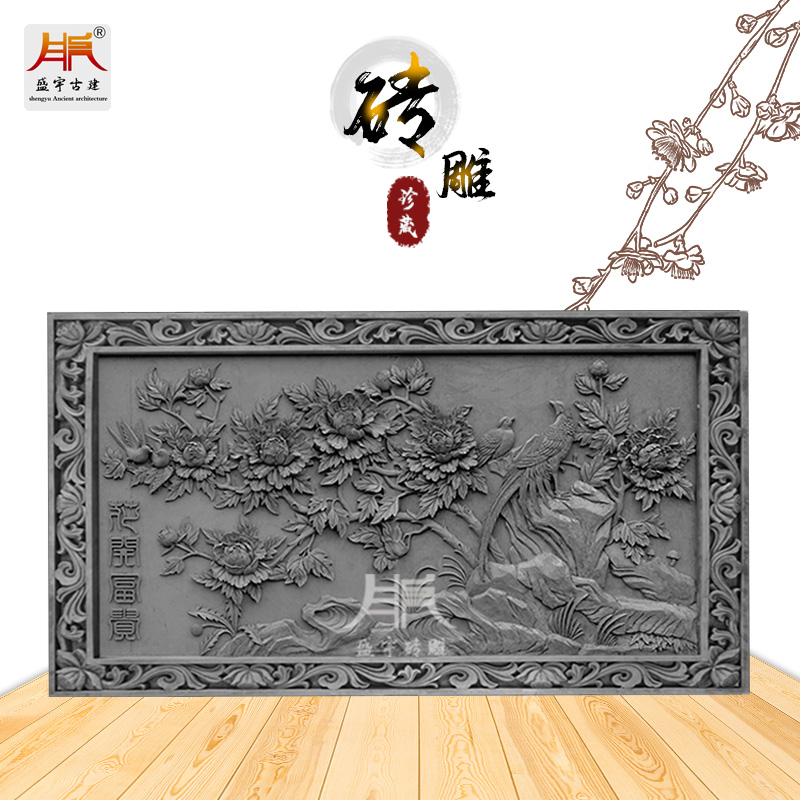 Shengyu 1 2 meters flower blooming rich and noble brick carving Siheyuan Chinese-style shadow wall rectangular 1200*800mm peony brick carving