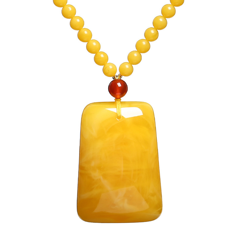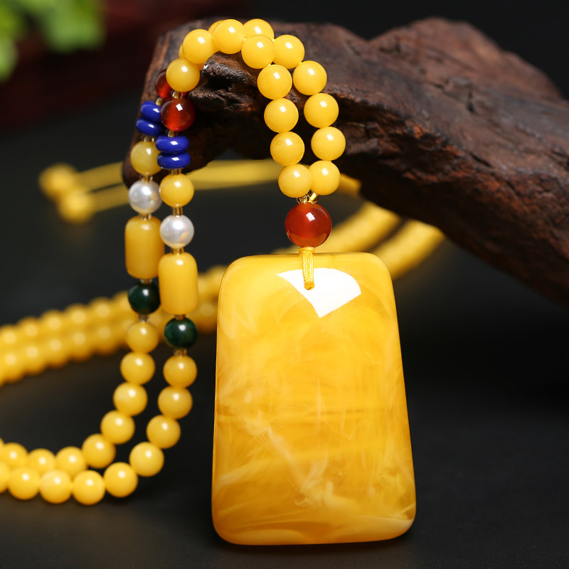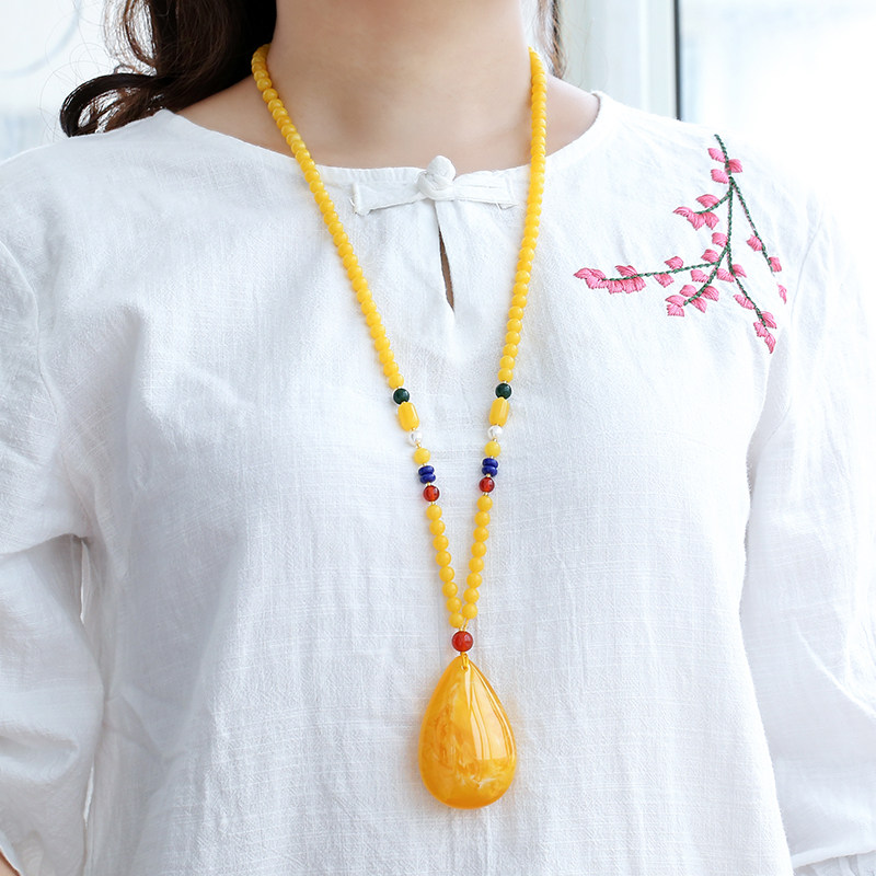 Natural beeswax drop pendant chicken oil yellow pendant men and women amber safe and sound brand high-end sweater chain necklace