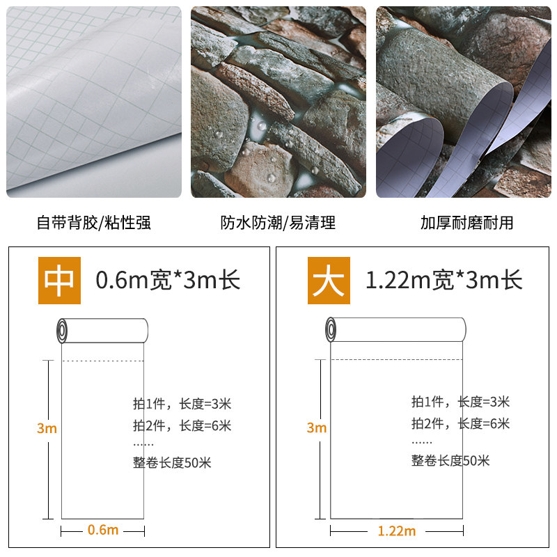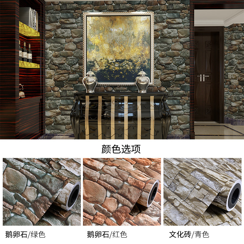 Retro self-adhesive wallpaper 3d three-dimensional wallpaper waterproof cultural stone hotel anti-collision wall sticker cobblestone porch wall sticker