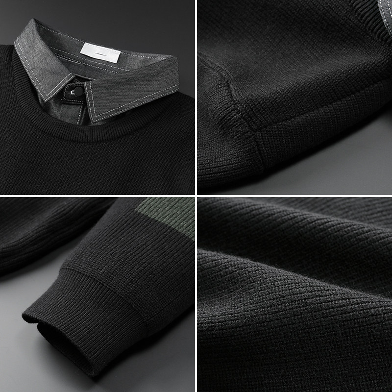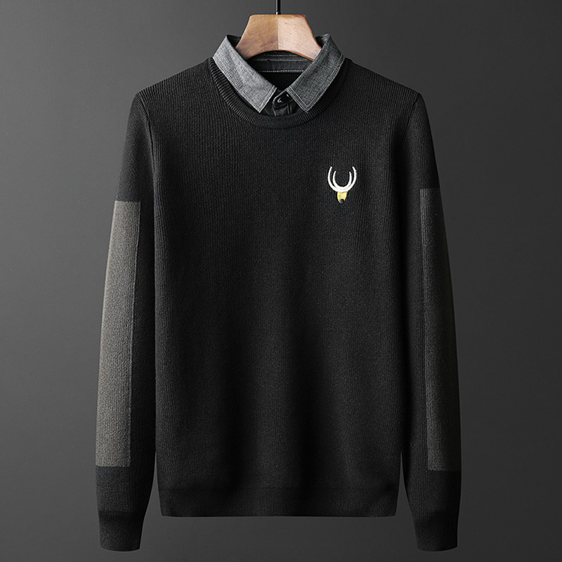 Fake two sweater men's Korean version Winter new trends with collar needlework Men's personality Embroidered Casual Inner lap
