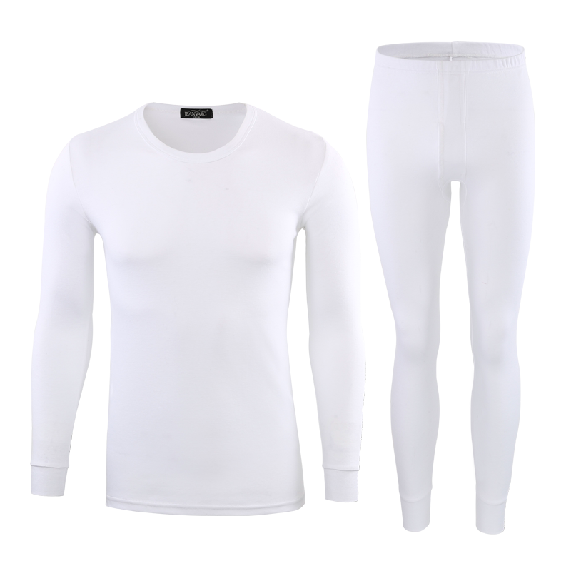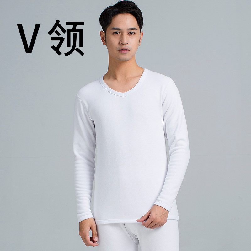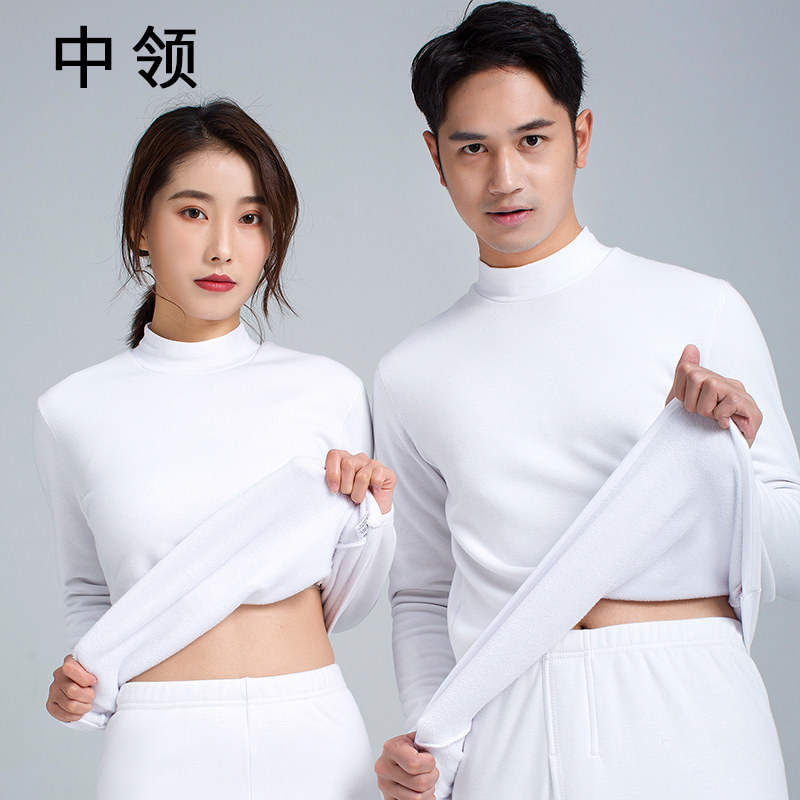 White heating clothing men's thickened and velvet pure cotton women's warm clothing women's round neck men's V-neck autumn clothes sanitary pants white