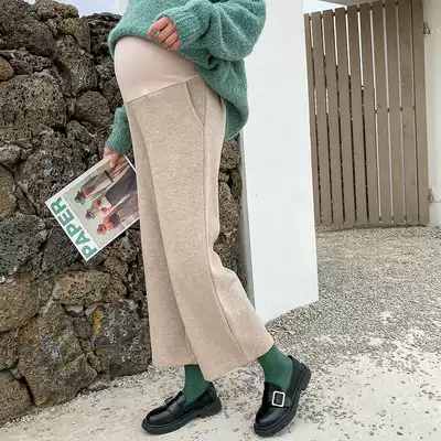 Pregnant Women wide leg pants autumn and winter wear 2021 new casual knitting loose large size thick straight pants nine Korean version