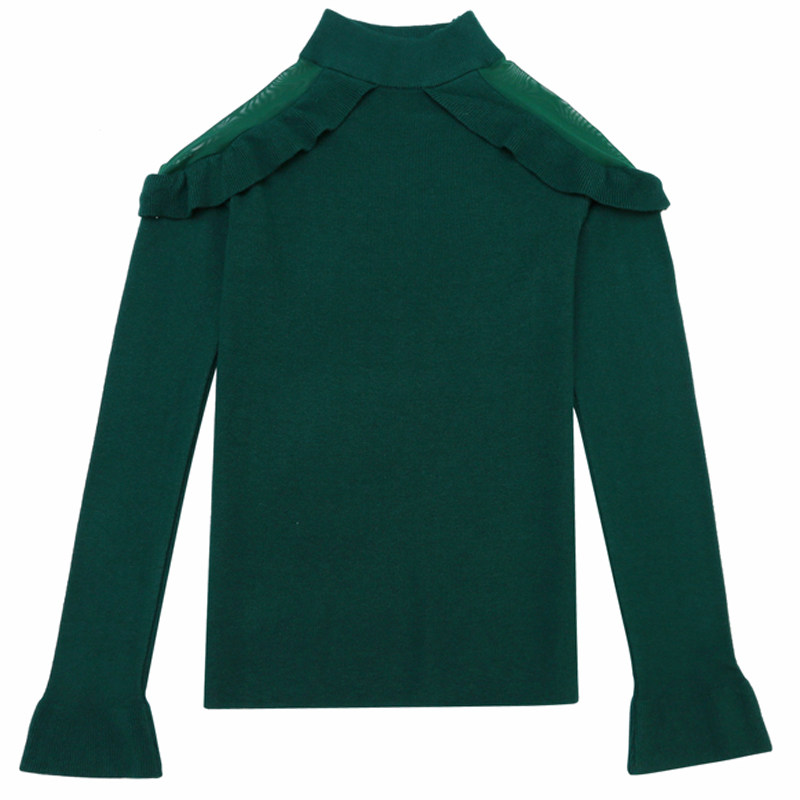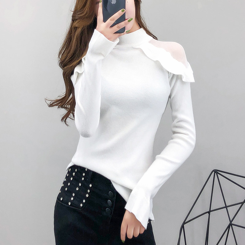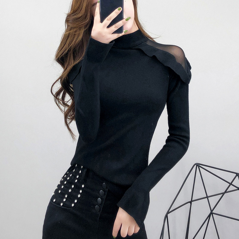 Semi-high collar thickened sweater jacket head autumn winter new mesh yarn splicing needle weaselwear 100 hitch to beat bottom blouses