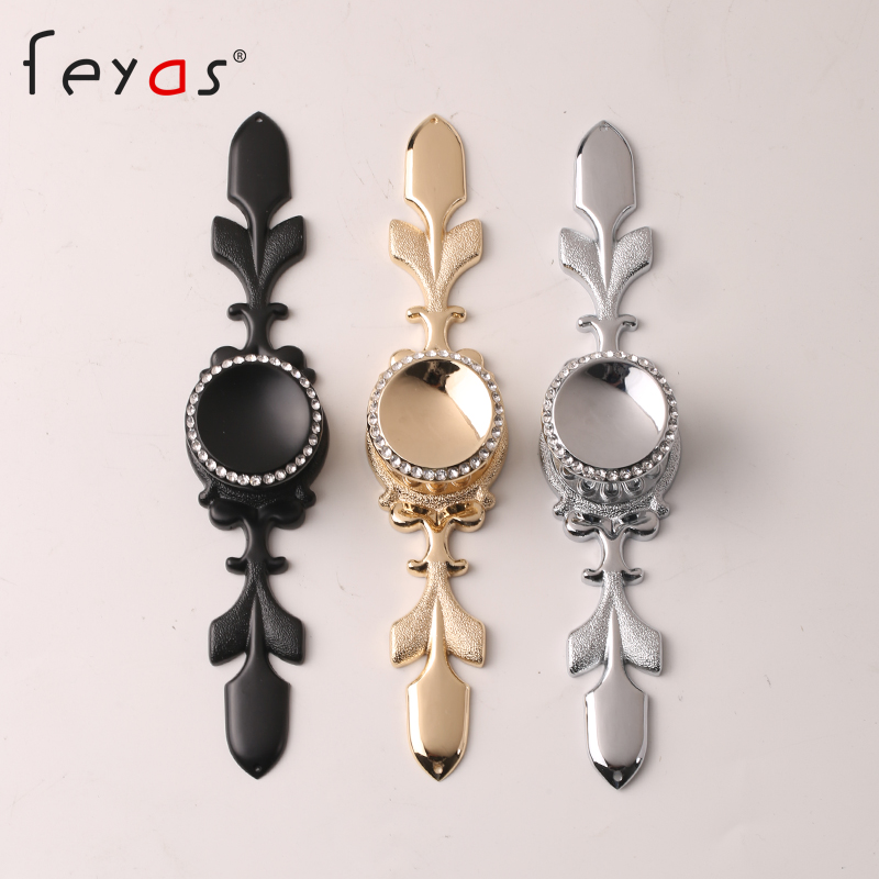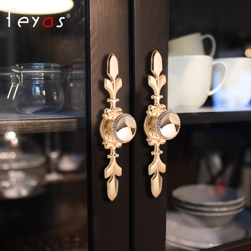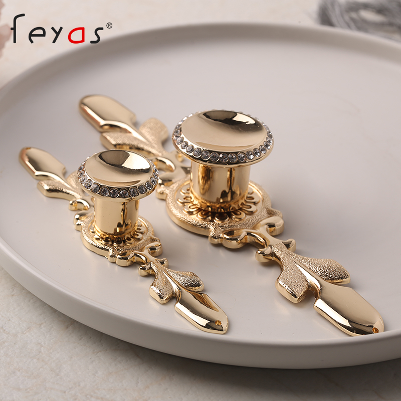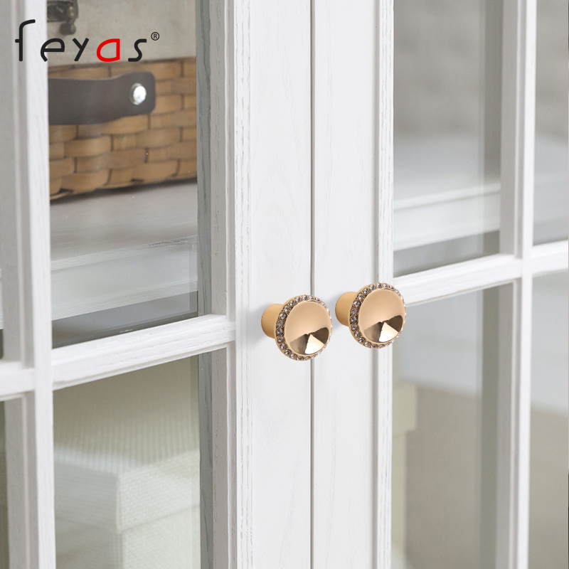 Light extravagant crystal diamond bright golden cabinet door handle European style large coat cabinet door integral cabinet handle drawer round single hole