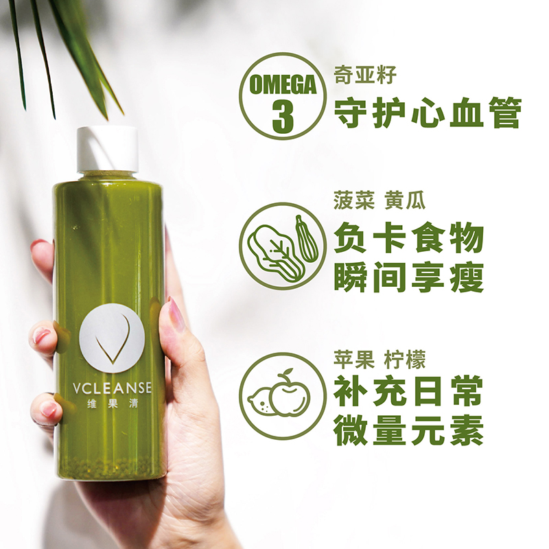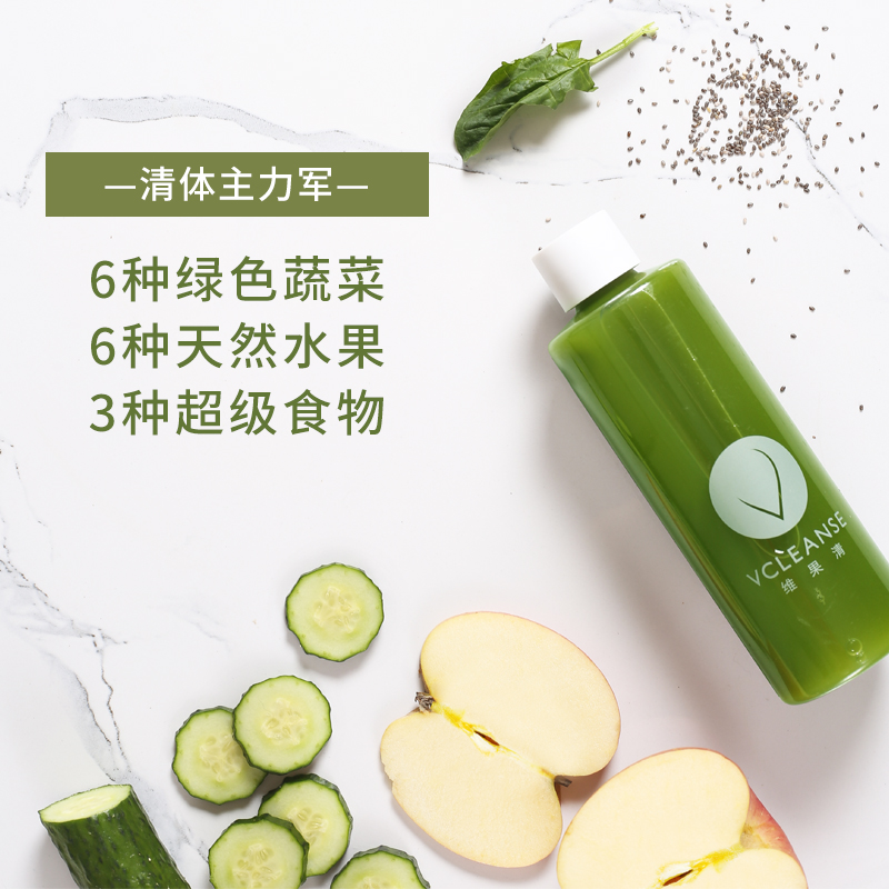 VCLEANSE Viguoqing small green bottle Light fasting vegetable and fruit body meal replacement vegetable juice fruit drink 300ml*6