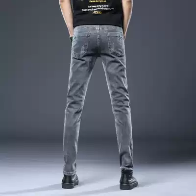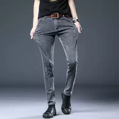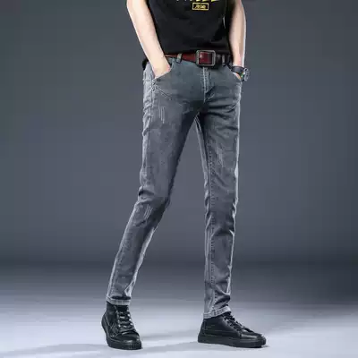 Plus velvet gray jeans men 2019 autumn and winter stretch slim men's jeans Korean trend trousers