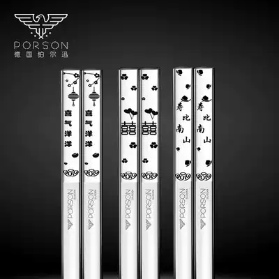 German PORSON festive wedding ceremony Double Happy word lucky word wedding 304 stainless steel chopsticks home mildew 10 pairs