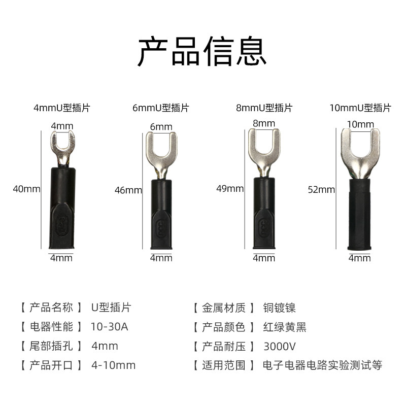 Wiring inserts terminal opening 4mm 6mm 8mm 10mm 10mm test U-type fork pure copper 4mm jack
