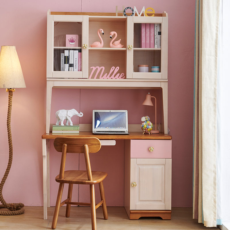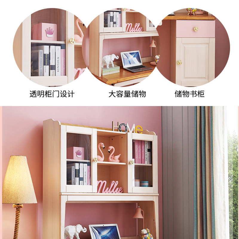 Nordic solid wood desk bookshelf combination student home bookcase desk All desk desk desk pink