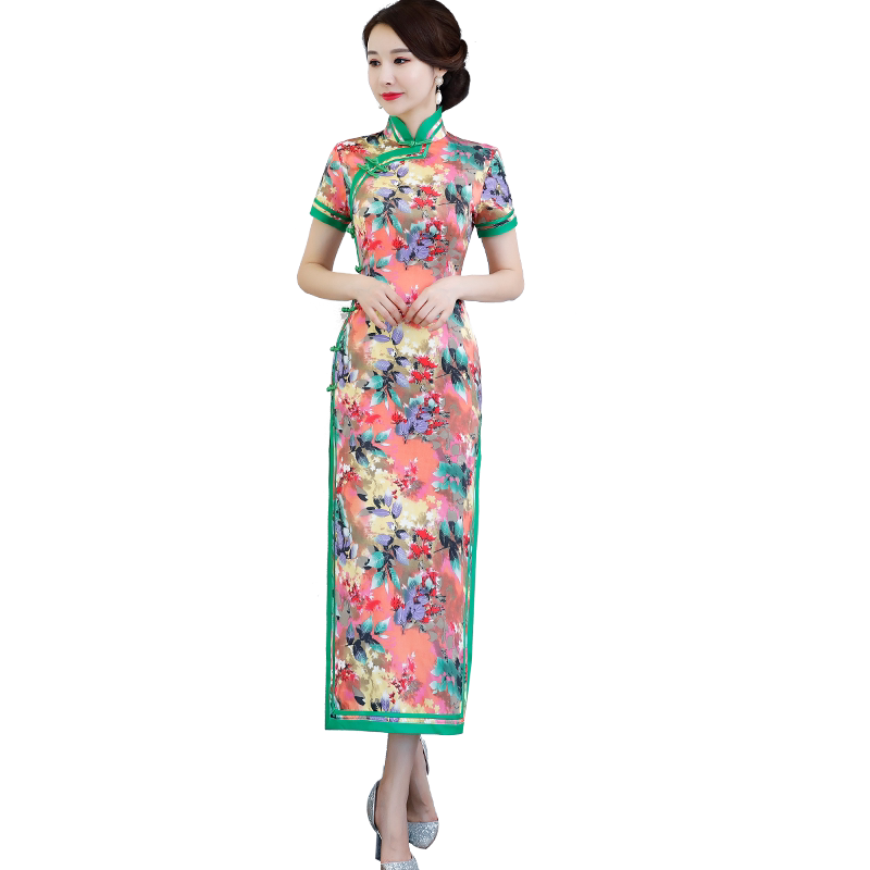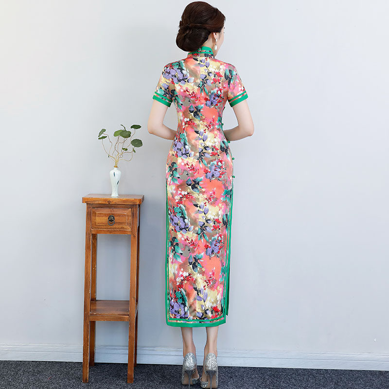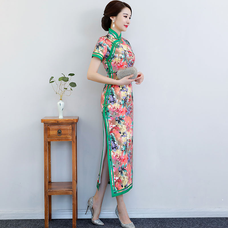 Long version cheongsam 2021 new young women retro elegant short-sleeved catwalk cheongsam modified dress summer