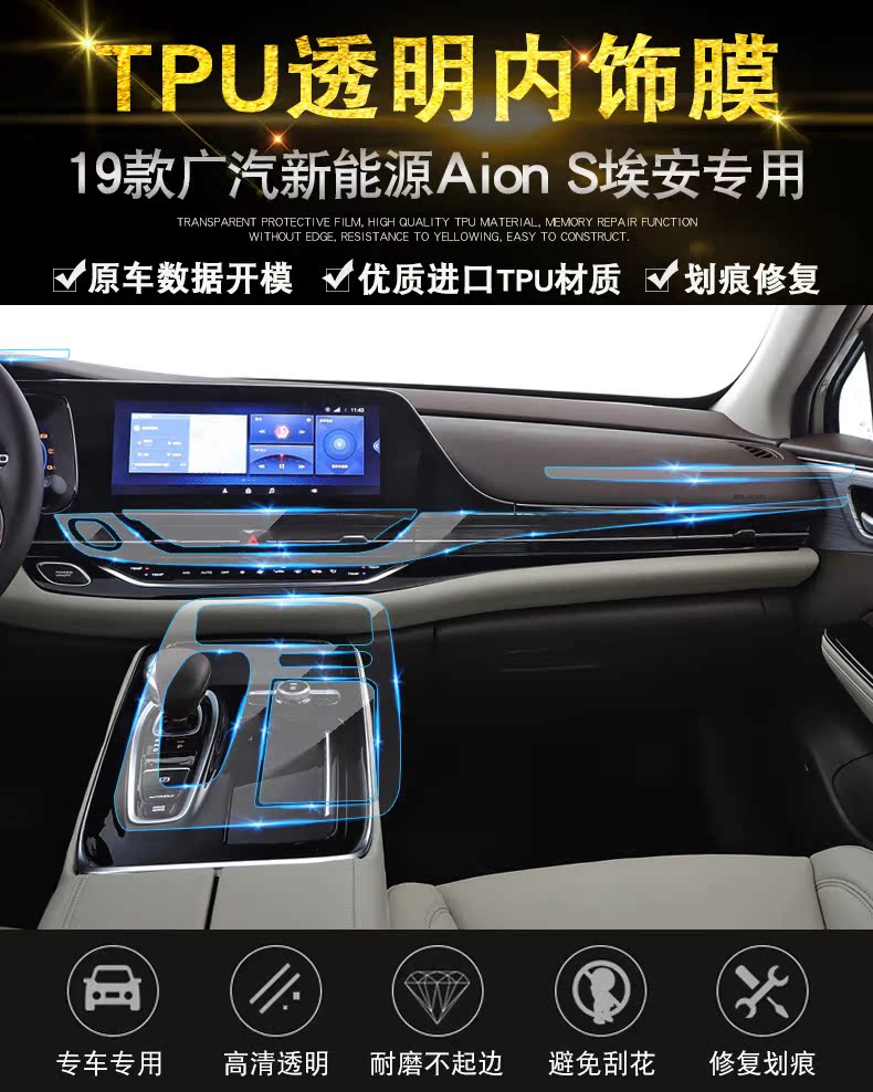 Wide steam new energy Aion S Ein interior protective film platoon panel TPU transparent central control film modification
