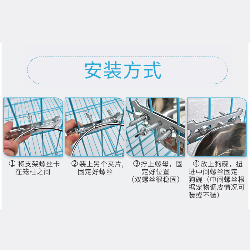 Cat bowl Dog bowl Anti-tipping hanging pet food bowl Stainless steel fixed cage Cat food rice bowl Water bowl Cat bowl