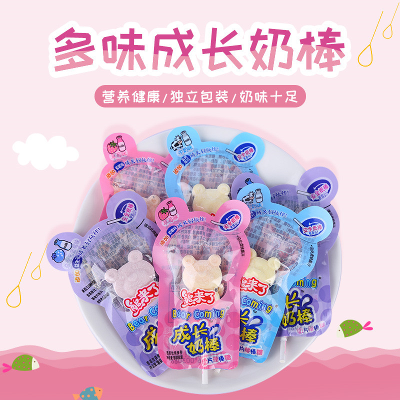 The bear is coming Children's growth milk lollipop Strawberry blueberry original multi-flavor mixed milk sugar Calcium milk food