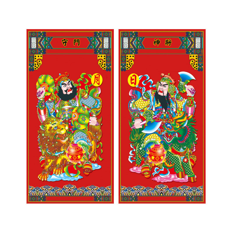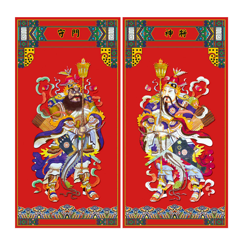 Plus door god-Fulu boy Plus Door God-Qin Qiong Jingde CPlus Door God-Qin Qiong Jingde FPlus Door God-Qin Qiong Jingde holding mace whip BPlus Door God-Qin Qiongjing