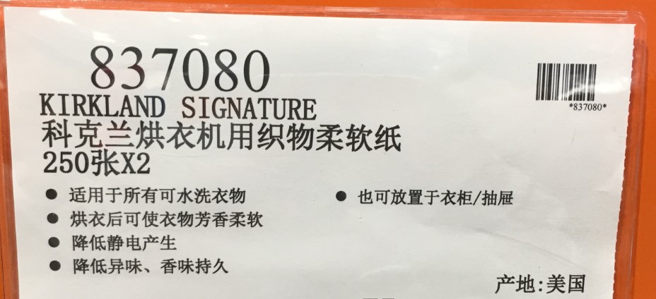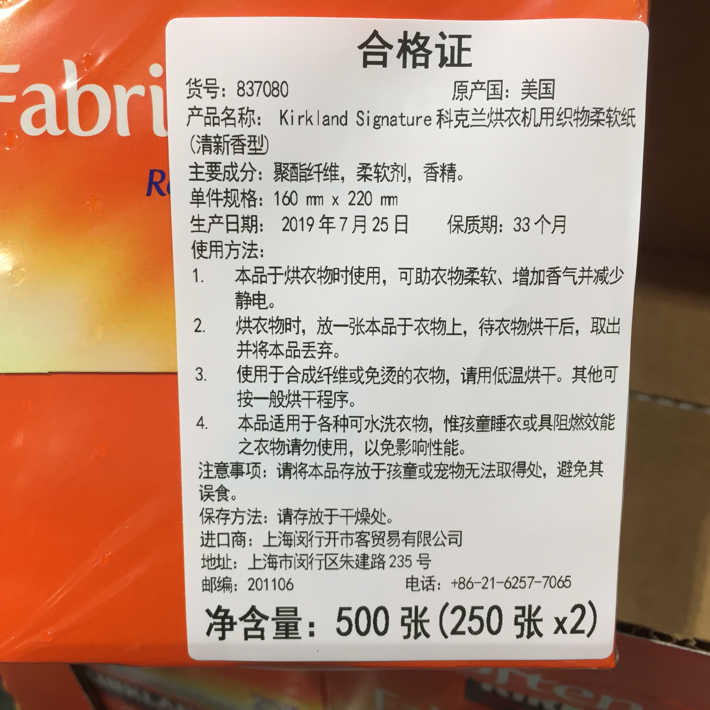 Shanghai Costco Kirkland antistatic and crumpled with 250 pieces * 2 boxes of paper dryer