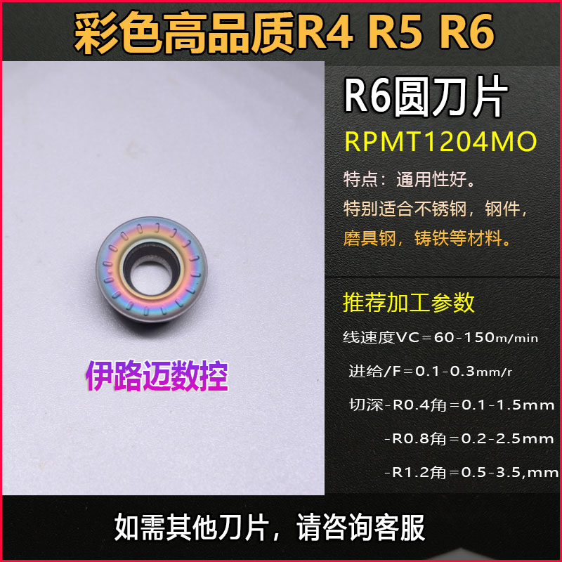 Ilumai numerical control round milling cutter sheet RPMT08T2 10T3 10T3 R4 R4 R6 R6 stainless steel round knife grain