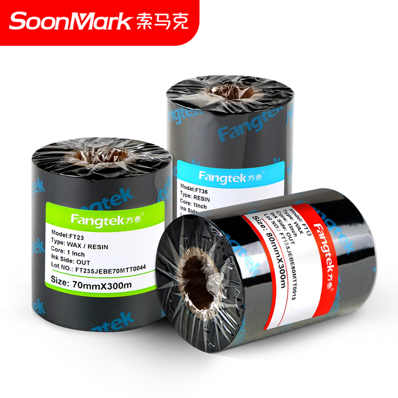 Fangtai enhanced wax-based ribbon roll 110X300m 50 60 70 80 90 100tsc barcode printer thermal transfer self-adhesive copper plate label sticker tag mix