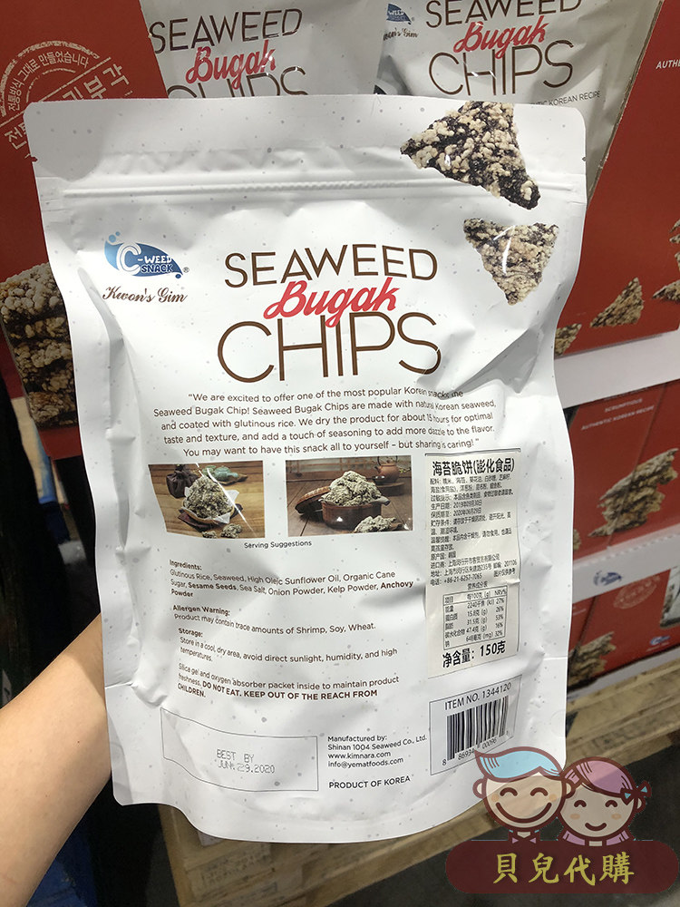 Shanghai spot costco Korean seaweed shortbread glutinous rice and seaweed made crispy and delicious 150g