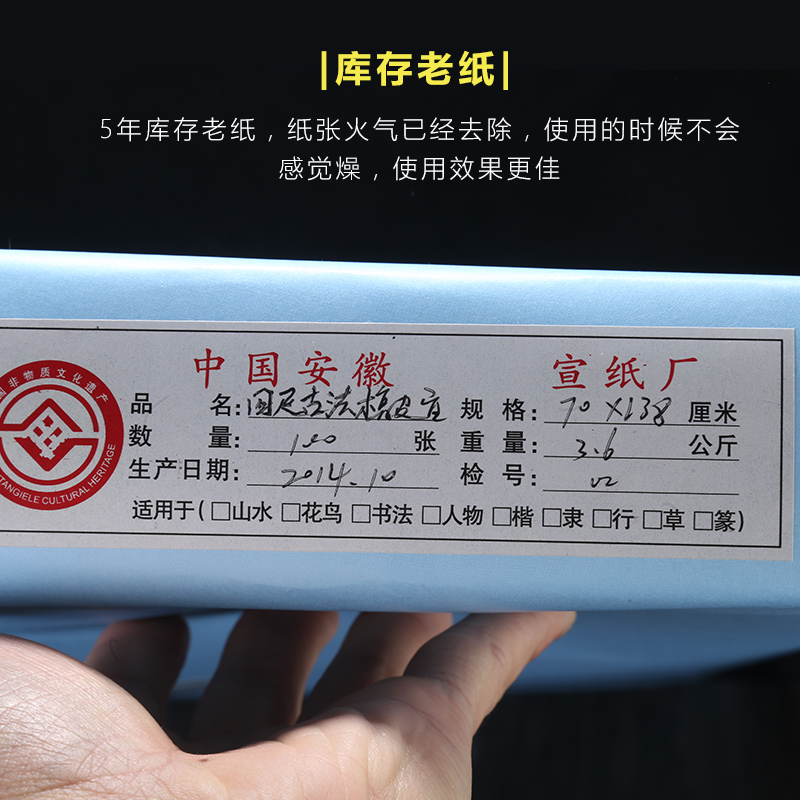 Green water sandalwood 3 feet 4 feet 6 feet rice paper raw Xuan Anhui Jing County handmade sandalwood raw rice paper brush painting book French painting competition special works paper pairs of bucket square half-cooked antique rice paper