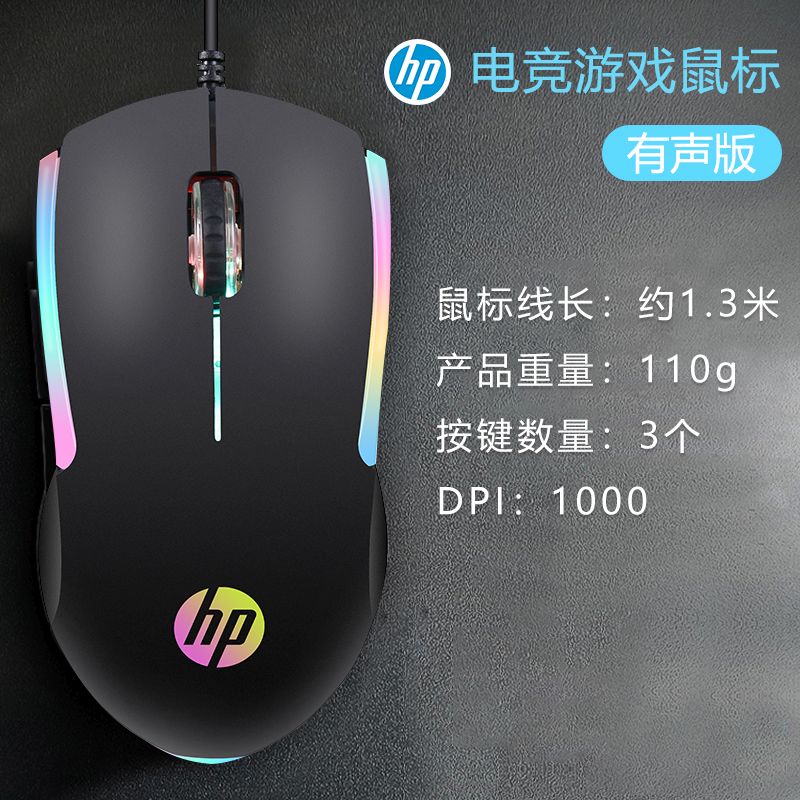HP HP M160 wired mouse RGB light-emitting notebook desktop computer business office game universal mouse