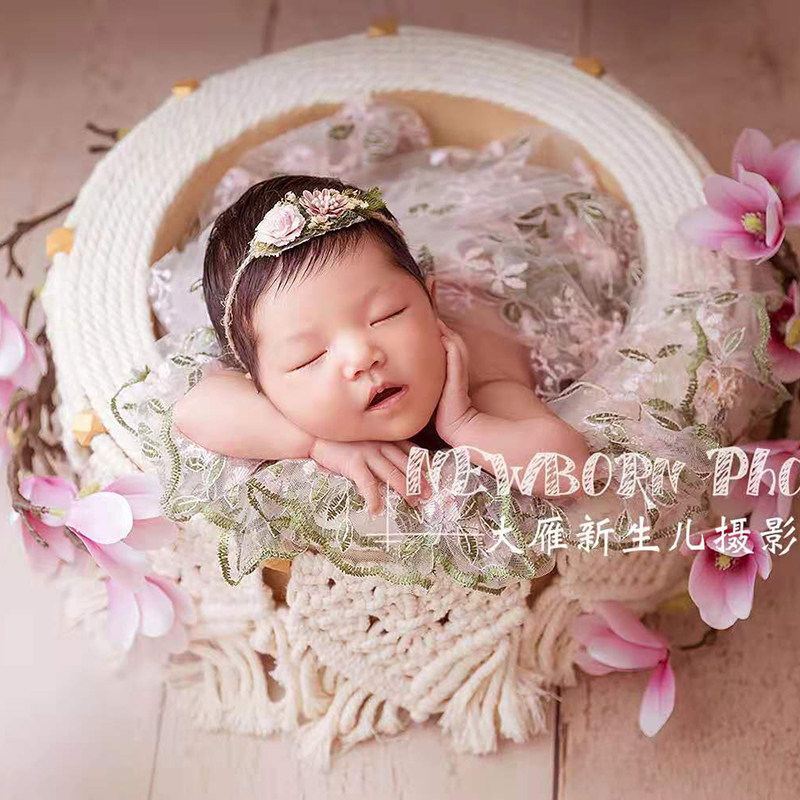 Round basket whole set (without small bear and wool cushion) jade Orchid branch flower 2 small pillow lace cloth 130x120cm hat wrapping cloth (mink material to love to fall hair) milky white pure wool cushion rectangle