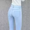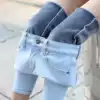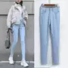 Velvet jeans women's high waist winter Korean version of fresh light blue student thickened stretch thin smoke pipe pants nine points