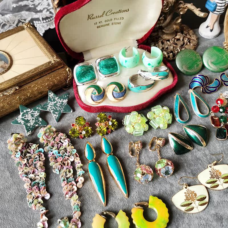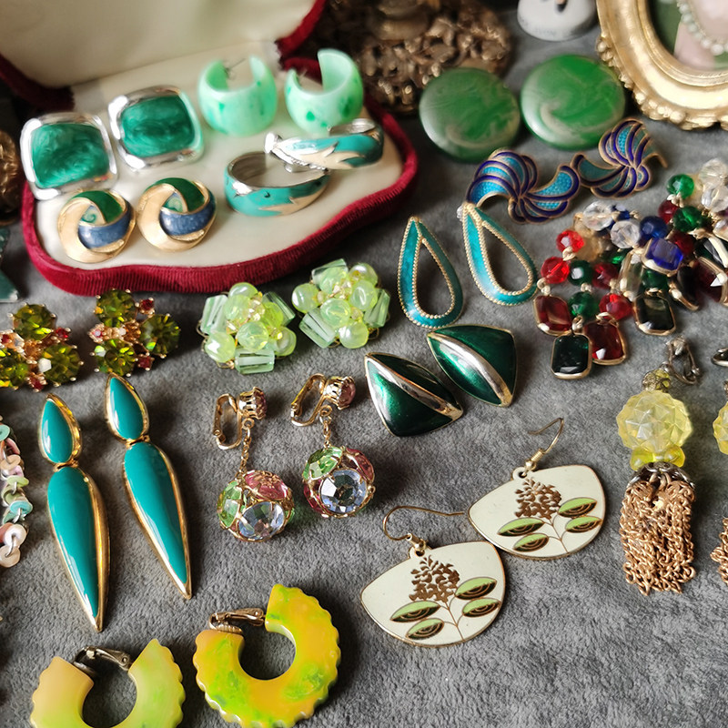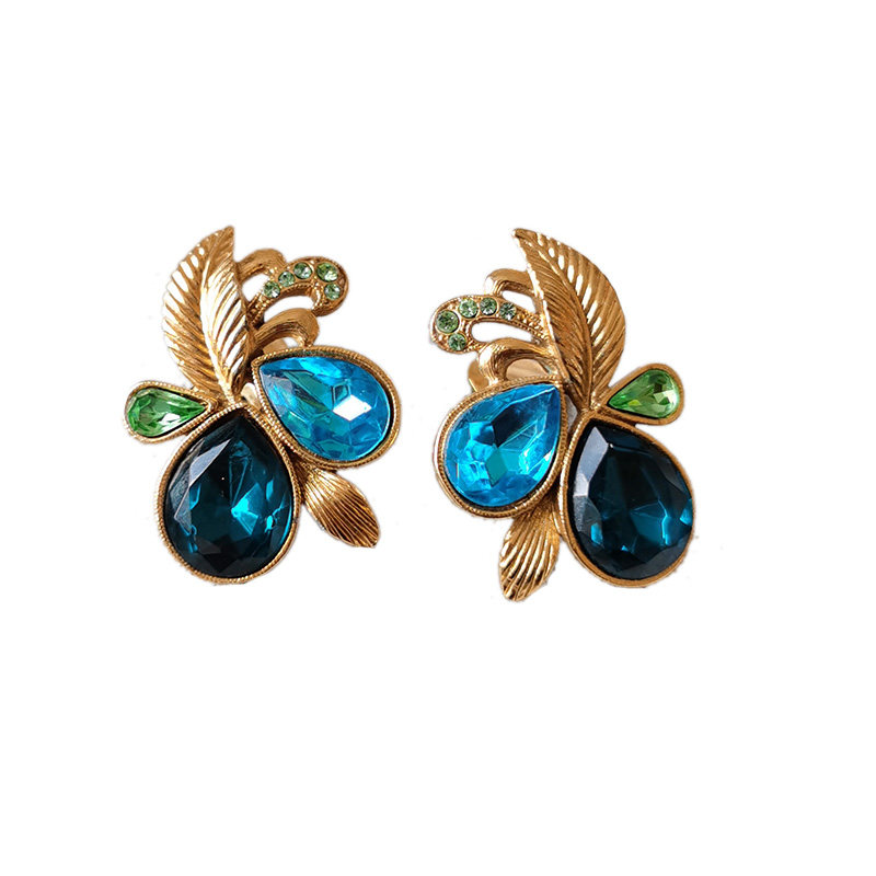Gold color blue Baise blue light yellow color transparent peacock blue cyan green (see blemish antique jewellery not to be changed) L ear clip 3 5cm beads with fade P ear clip 2 6cm with mark t
