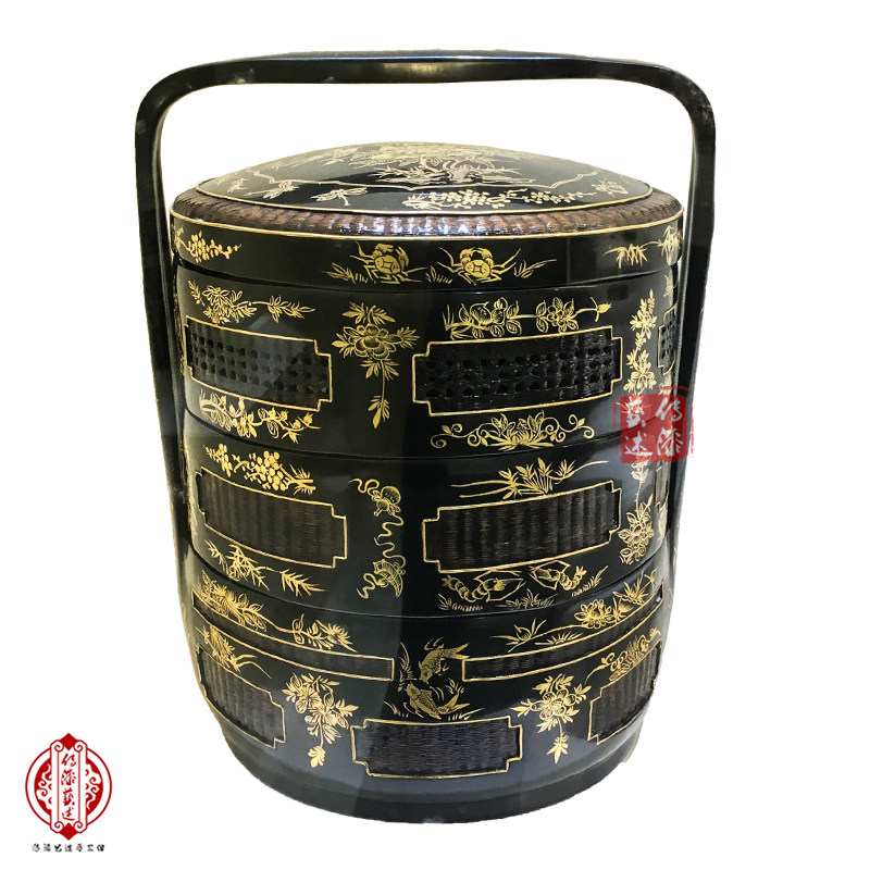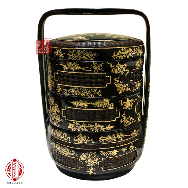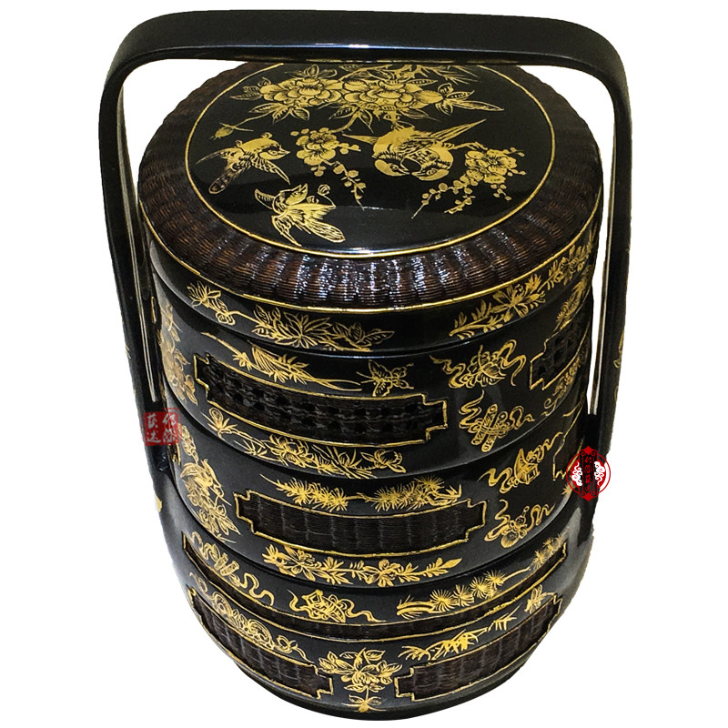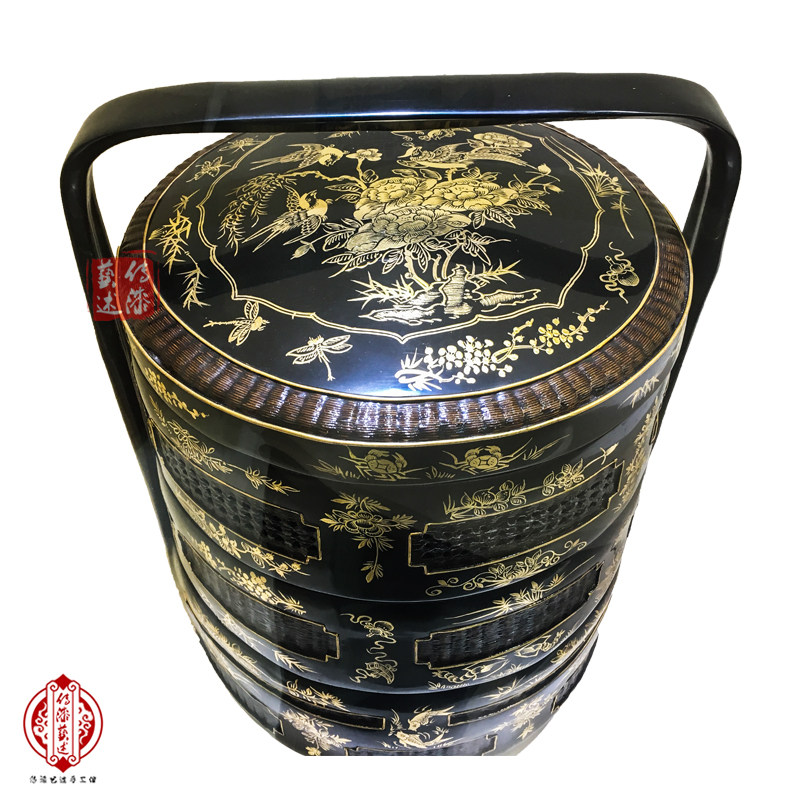 Yongchun Lacquer Basket Pure Handicraft Flower and Bird Totem Bamboo Lacquer Pure Gold Wedding Basket Burning Incense Basket Bye Bye Lacquer Art Collection