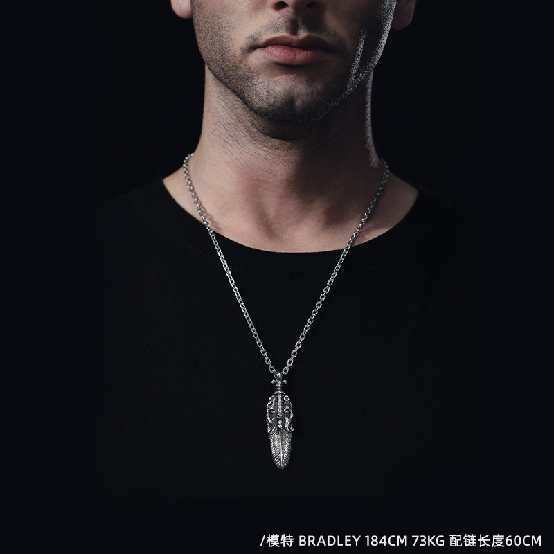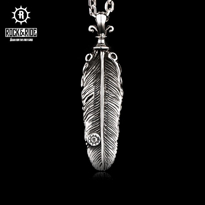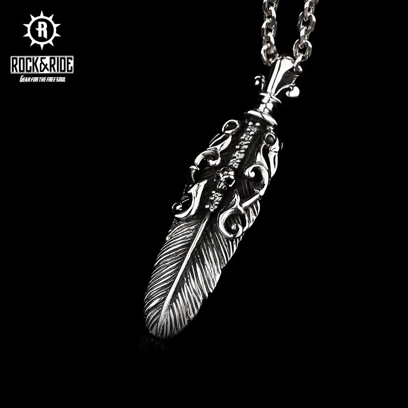(Official) ROCKRIDE Skull Feather Pendant 925 Sterling Silver Fashion Necklace Fashion Male Personality Retro