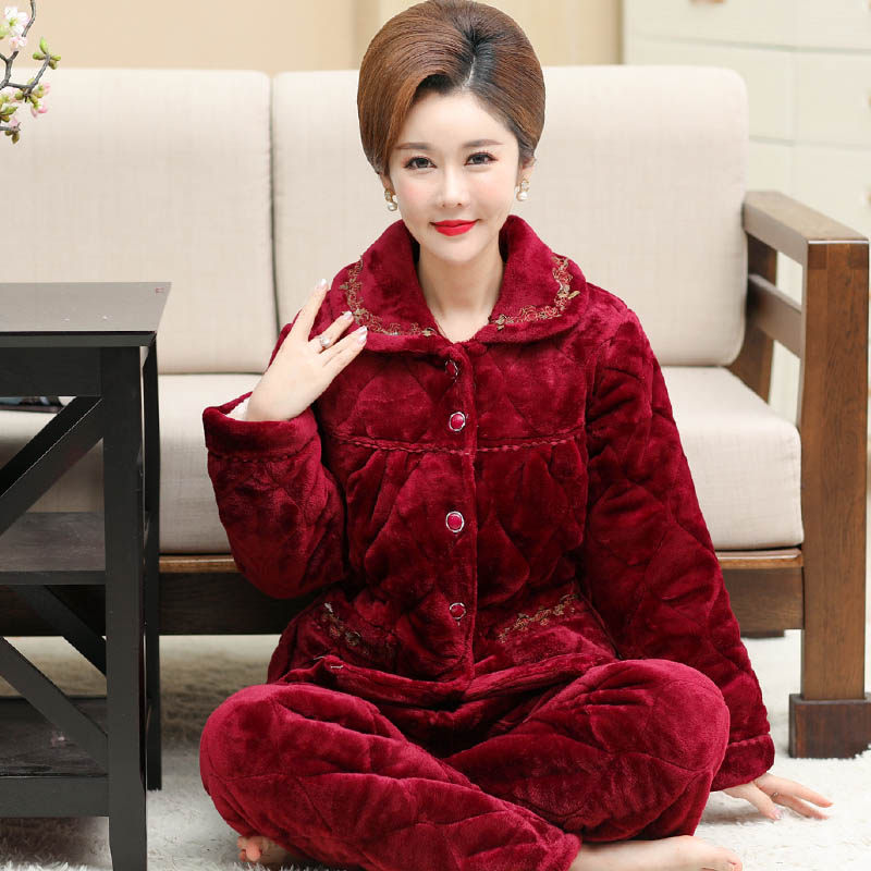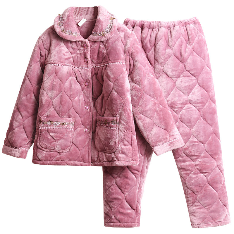 Winter Paving Cotton Pyjamas Woman Middle Aged Mother Mother-In-Law Three Layers Thickened Warm Coral Suede Cotton Padded Jacket Suit Suit