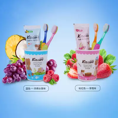 South Korea imported children's fruit flavor toothpaste toothbrush set 3-6-12 years old can swallow tooth decay during tooth replacement Strawberry flavor