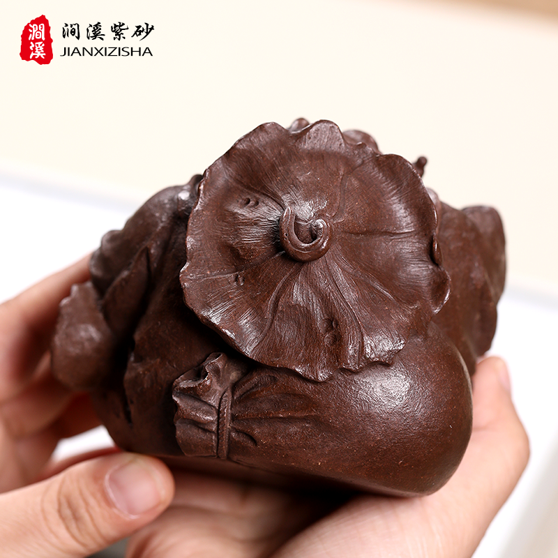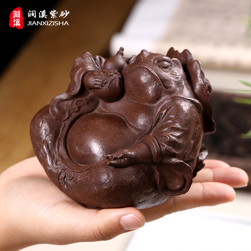 JianXi Yixing purple sand tea pet sculpture famous artist Chen Hongjun handmade toad immortal golden toad boutique tea ceremony tea tray