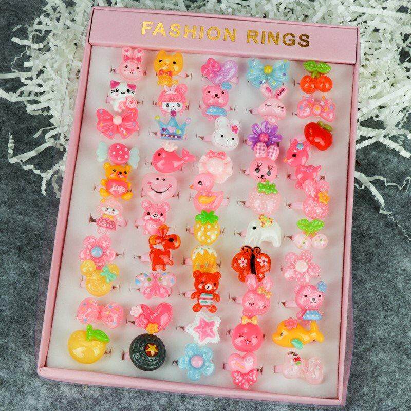 Cartoon Ring Random 50 Bulk Cartoon Random 100 boxed parts Repeated Acrylic Gem Rings Random 12 Shiny Stars Plastic Gem rings 36 Cartoon Rings Random 100