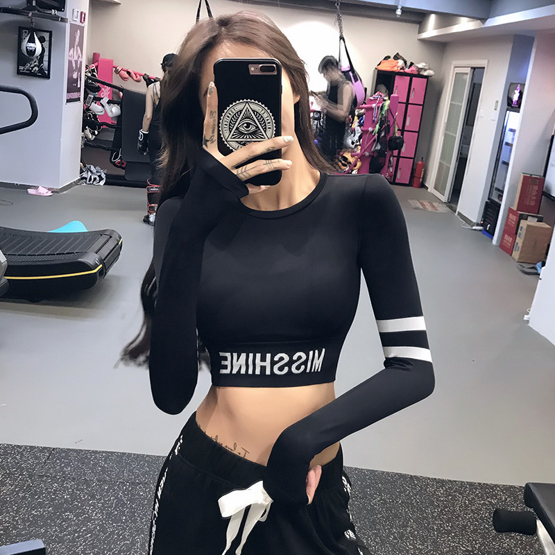 Fitness girl alphabet umbilical sports top Long-sleeved tight bottoming shirt Short quick-drying running yoga suit t-shirt