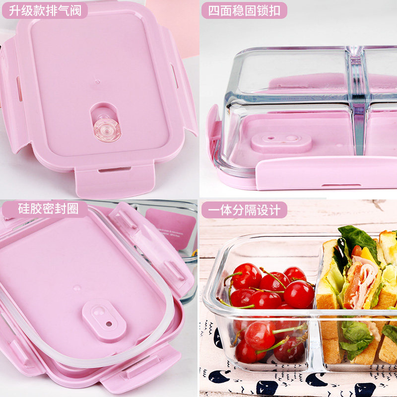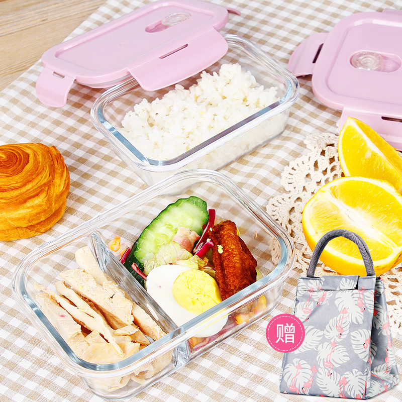 Microwave heating lunch box separated type glass refreshing insulation lunch box suit for work group students special bowl