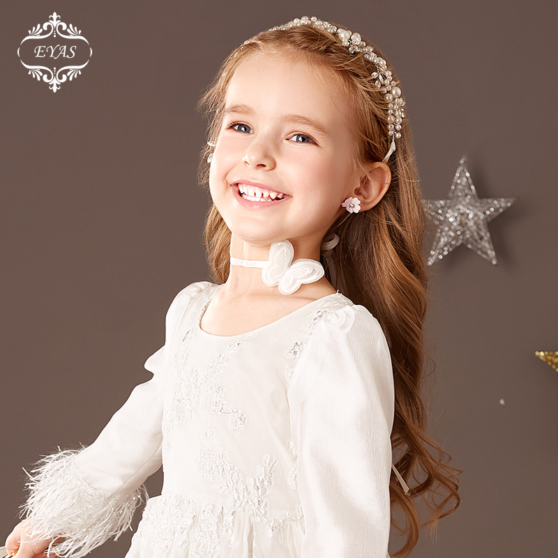 EYAS girls hair ornaments Korean version of pearl diamond dress hair band Child temperament Princess wind hair band Little girl headdress