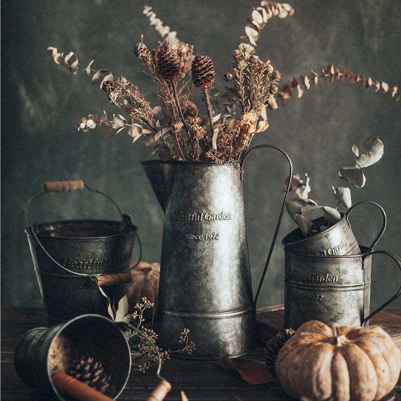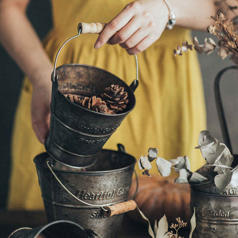 Cherry on the back of the cherry on the old sheet Tinder Bucket Flower Barrel Flower Vase Flower Vase Flower vase Decorative Pendulum to shoot Prop Garden-Taobao