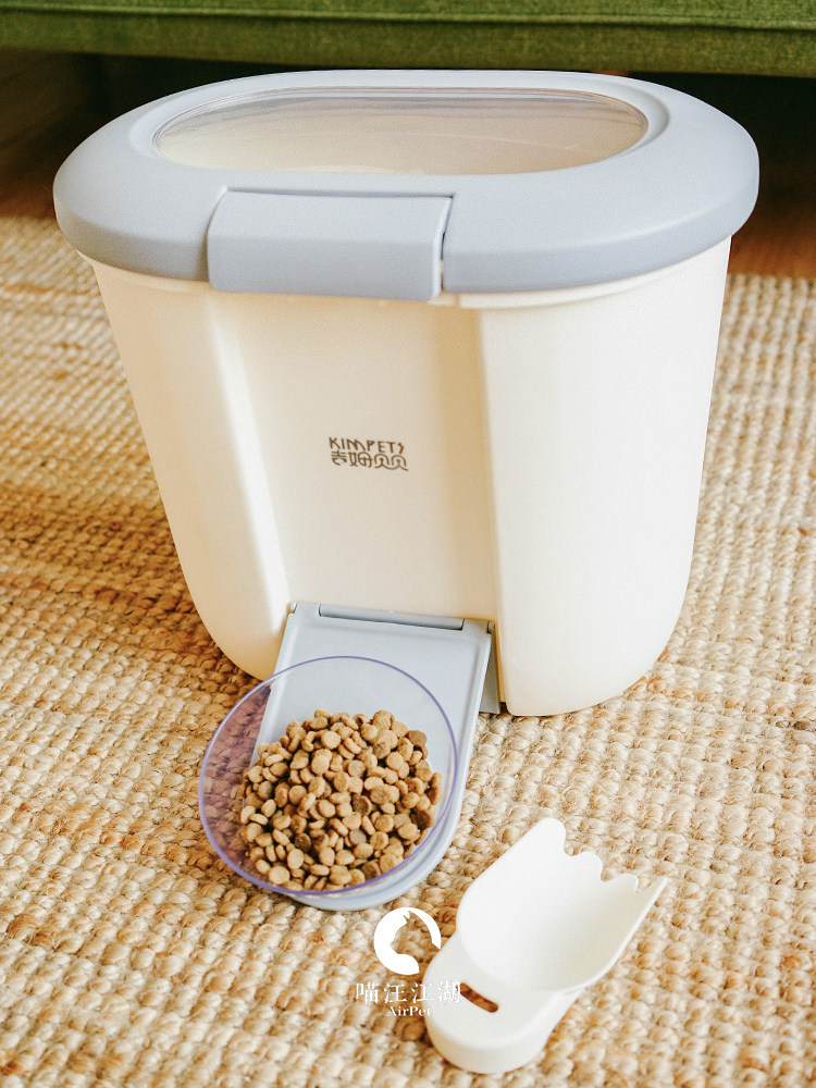 Grain bucket with bowl, designed transparent top cover, sealed grain storage bucket, cat food bucket