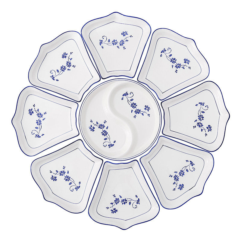 Blue flower plate 46CM 6 1 bowl (to send large spoon) Blue flower plate 66CM 8 1 plate Blue flower plate 66CM 8 bowl (to send large spoon) Blue flower 70CM crown 8