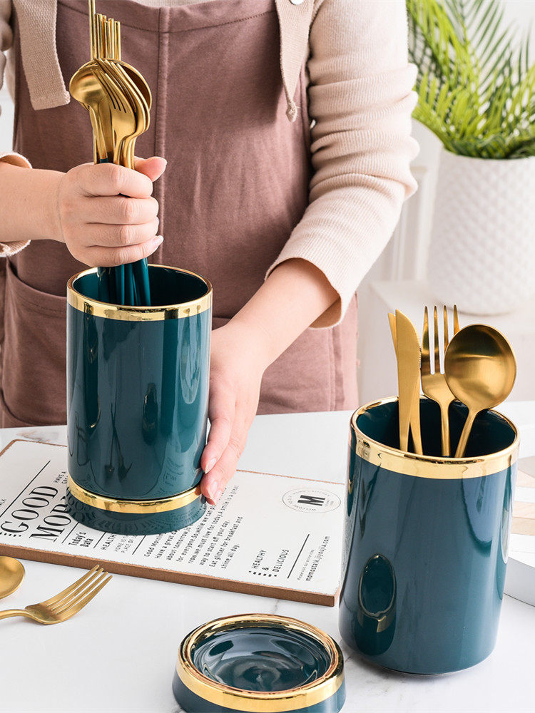 Ancestral Mother Green Chopstick Cylinder Cage Nordic Style Light Lavish Ceramic Home Mildew Kitchen Cookware Knife Fork Spoon Chopstick Drain Cage