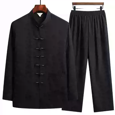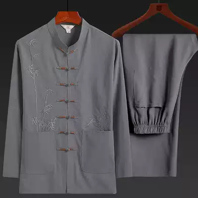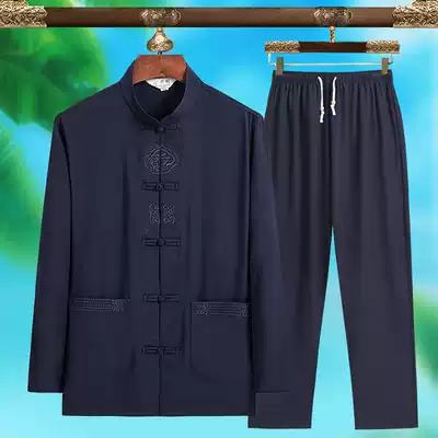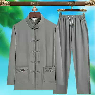 Tang suit male middle-aged and elderly linen long sleeve suit Chinese style father dress Chinese old man grandfather cotton hemp spring and autumn thin