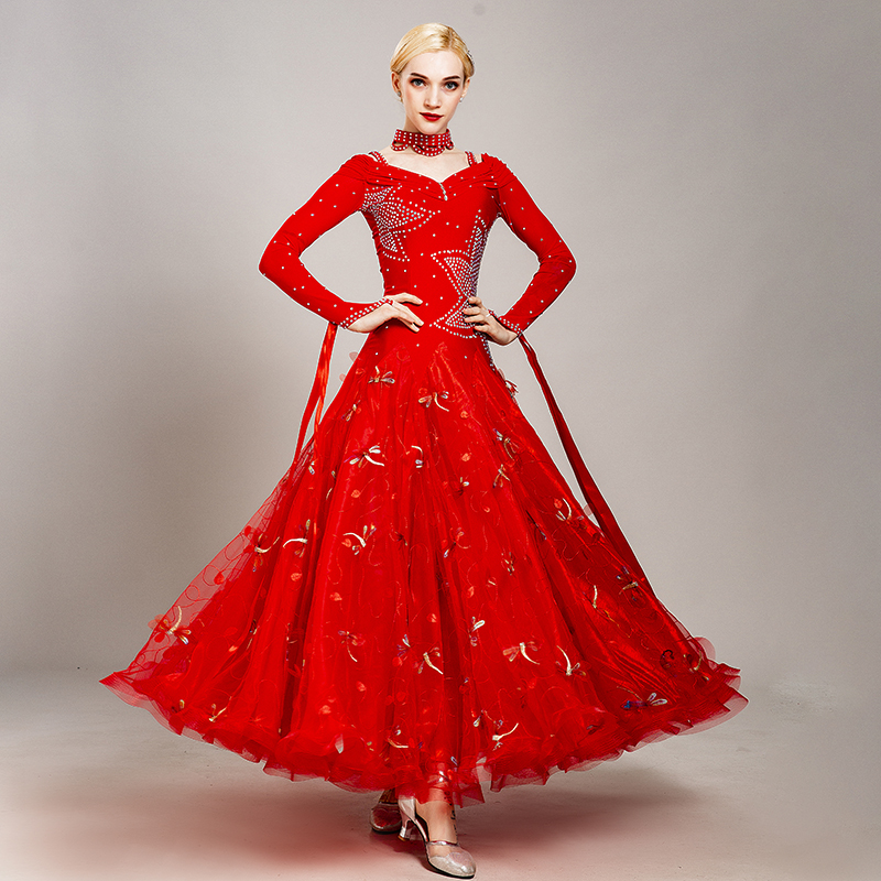 New social dance dress diamond-encrusted national standard dance waltz costume modern dance performance skirt custom-made