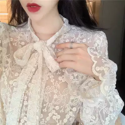 Autumn and winter new western style lace bottoming shirt women's mesh hollow sexy little shirt long-sleeved princess style body top