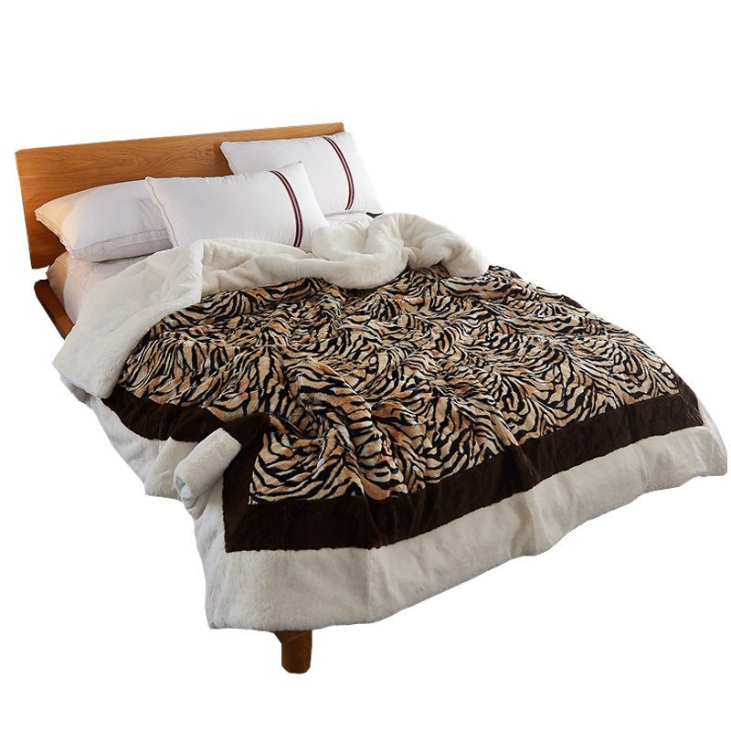 Haixintian velvet blanket Autumn and winter thickened Raschel double-layer blanket double wedding wedding velvet blanket tiger pattern