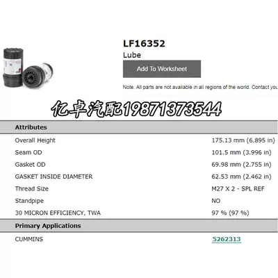 LF16352 5262313 P556352 2P0115403 B40050 OG112 Oil filter element SM5090