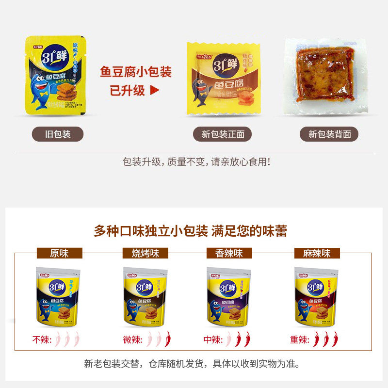 Yanjin shop 31 degrees fresh fish tofu 500g scattered dried tofu spicy strips spicy snacks whole box of dried tofu