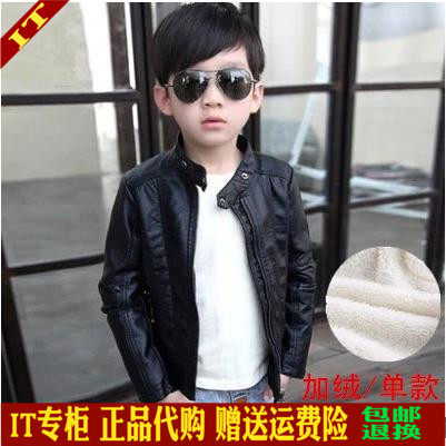 Korean version of the boy's autumn and winter leather jacket children's coat in the big boy baby's new plus velvet thickened autumn and winter jacket jacket trendy