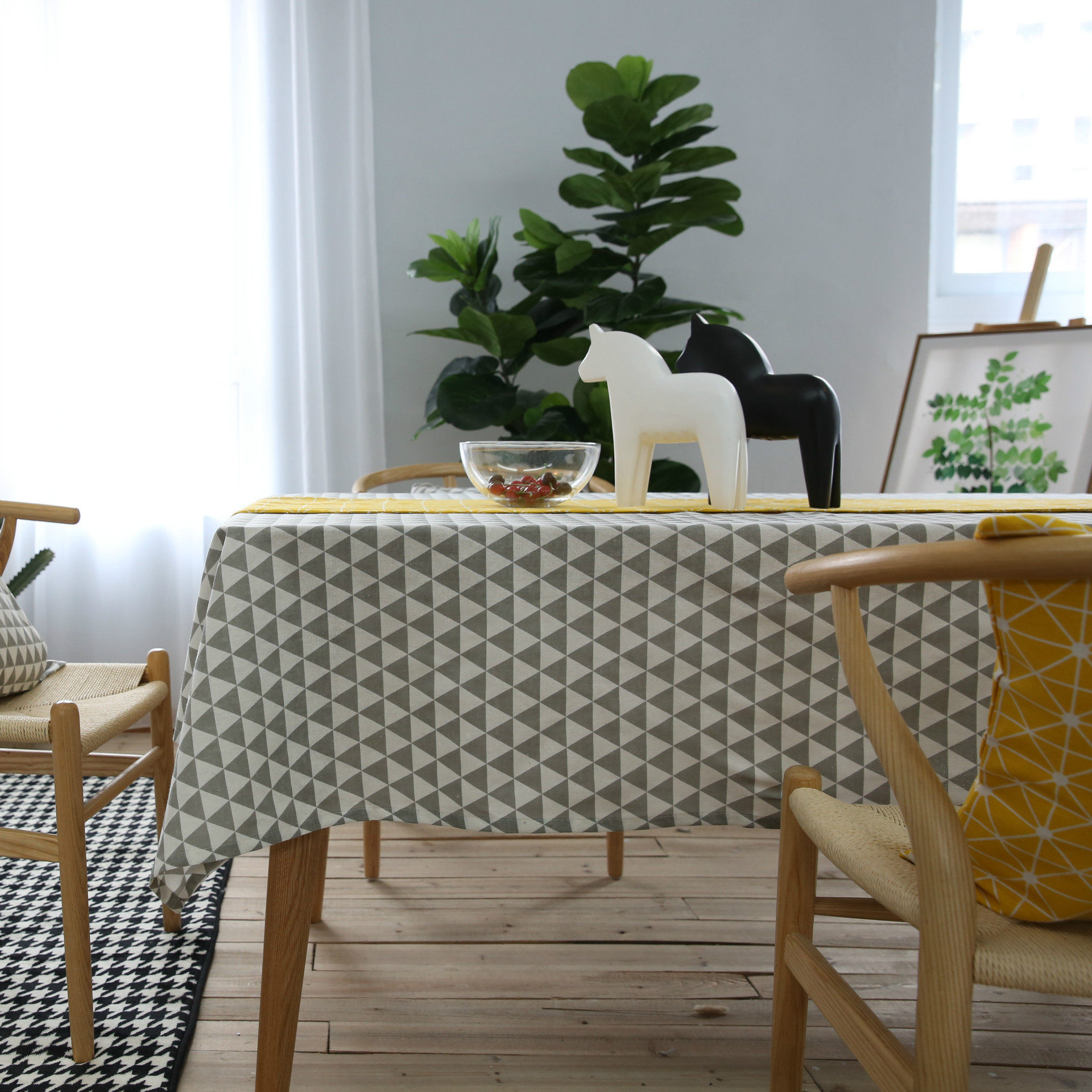 Cotton and linen tablecloth fabric rectangular geometric pastoral small fresh coffee table tablecloth round table square dining table cover cloth towel customization