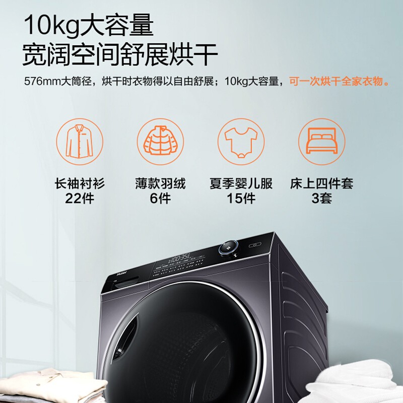 Haier Haier heat pump dryer 10kg drum sterilization mite dryer 56°C fast drying protective clothing machine